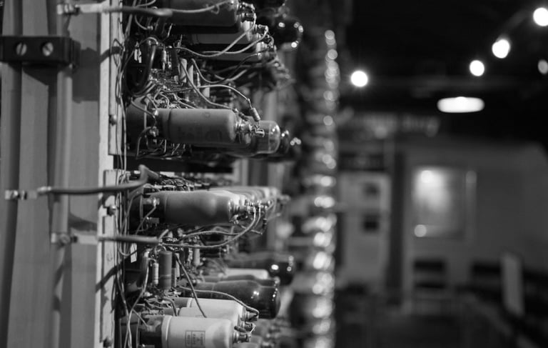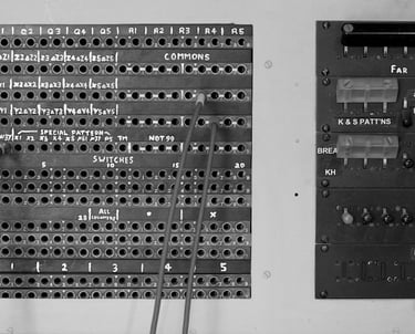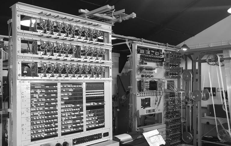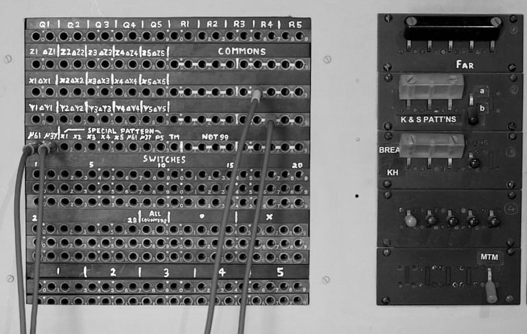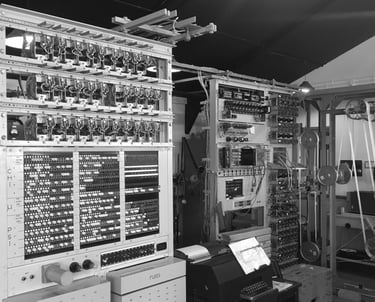 Images: "Colossus" by Tom Page at The National Museum of Computing and "Colossus Switchboard" by Alan Levine are licensed under CC BY-SA 2.0. "The Colossus Computer on display at Bletchley Park" by Farai Gandiya, released under CC0 1.0.